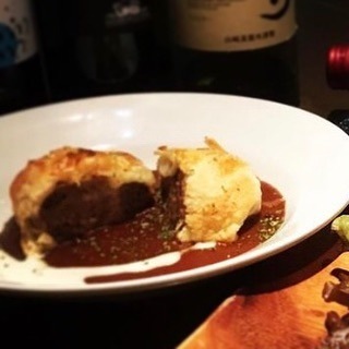 ジューシーハンバーグとトロトロモッツァレラをパイ生地で包んであります。
