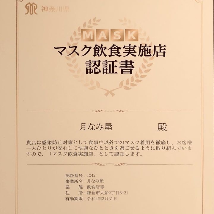 #マスク飲食実施認証店